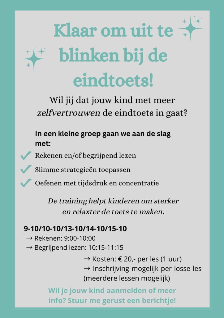 Uw kind krijgt een werkmap waarin u kunt zien waar hij of zij aan werkt. Soms krijgt uw kind ook huiswerk mee. En vaak krijgt u een tip hoe u thuis met uw kind verder kunt oefenen. Het is heel fijn als u daaraan meewerkt!